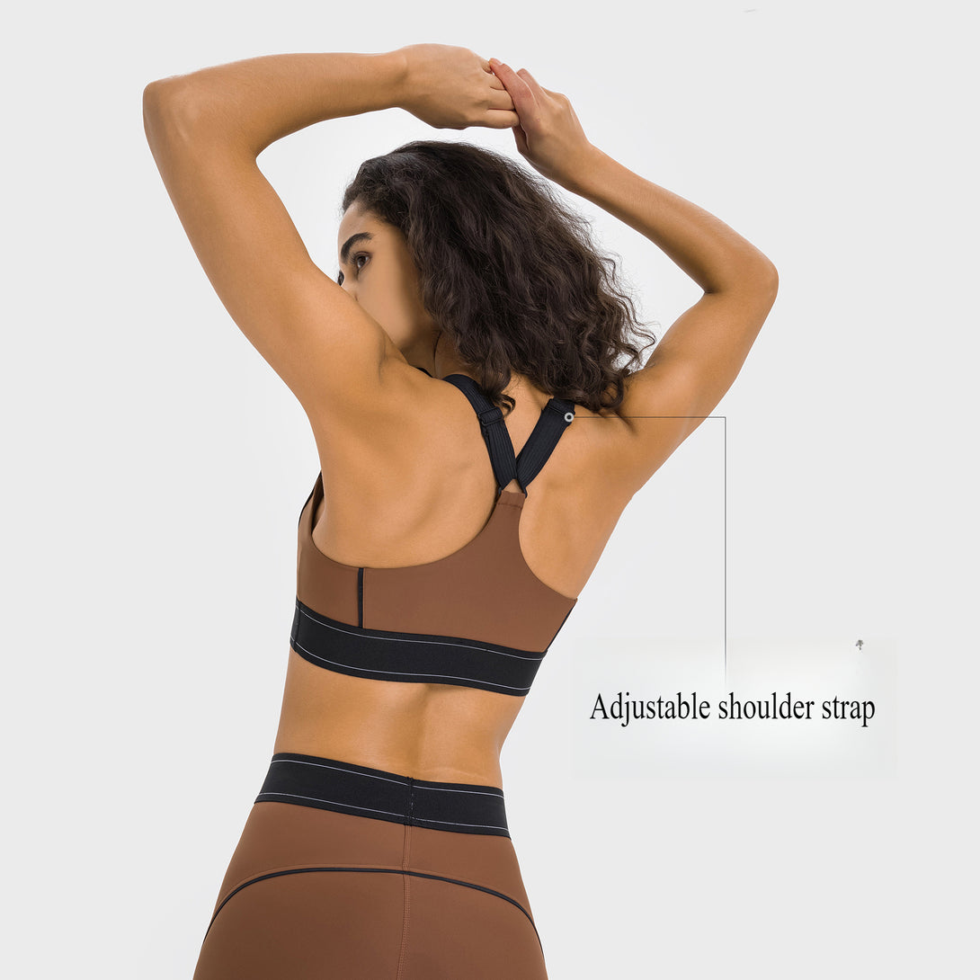 New Arrival Contrast Color Adjustable Strap Cloud Feel Sports Bra High Intensity Shockproof Push-up Training Bra WDQ346