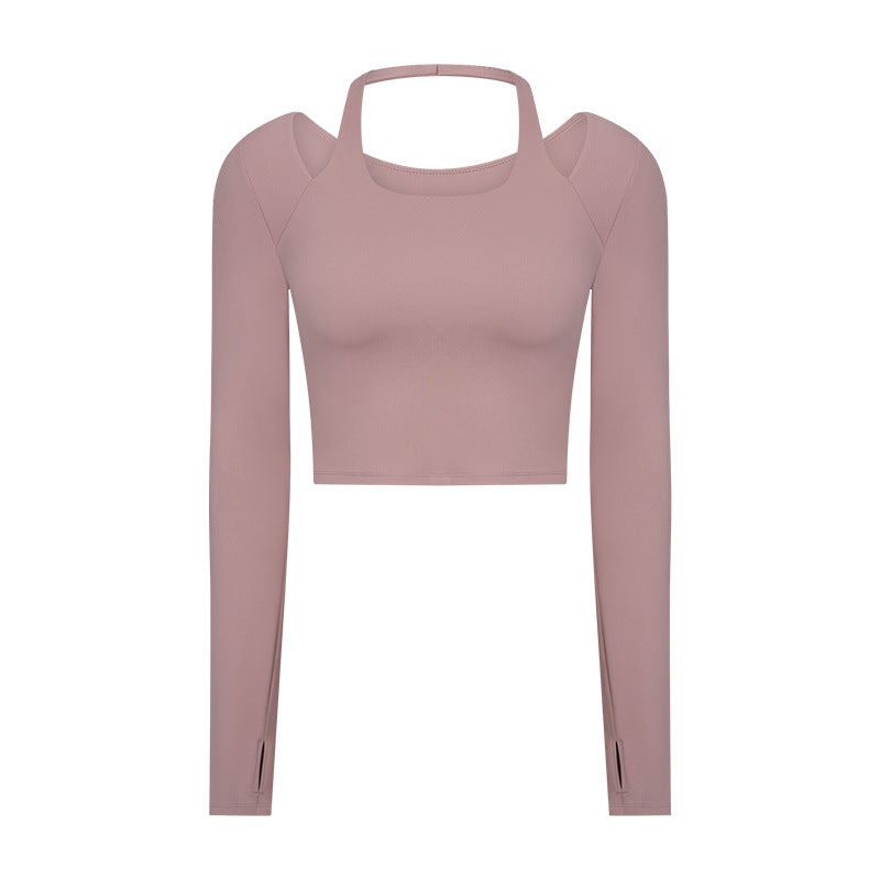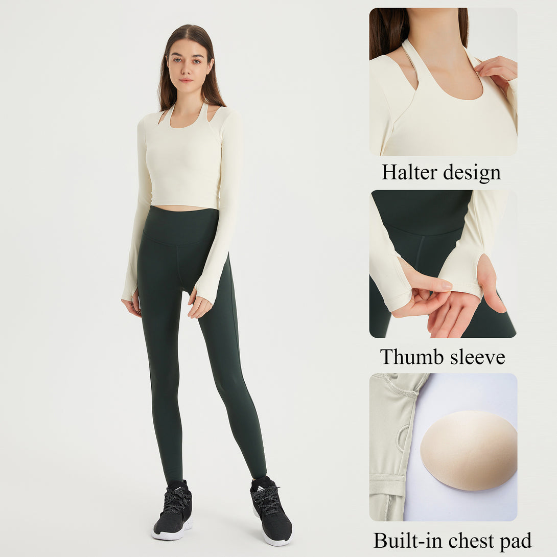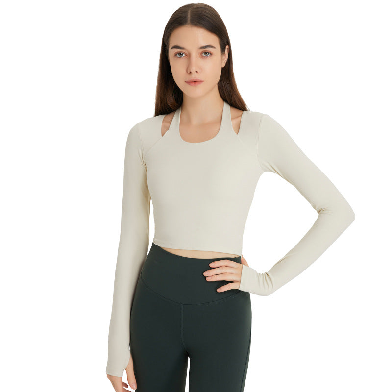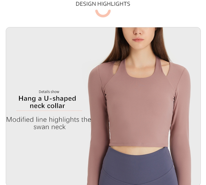 Fashionable Neck Hanging Long Sleeve Women's Top Slim Fit Soft Brushed Yoga Wear for Fitness WDQ214