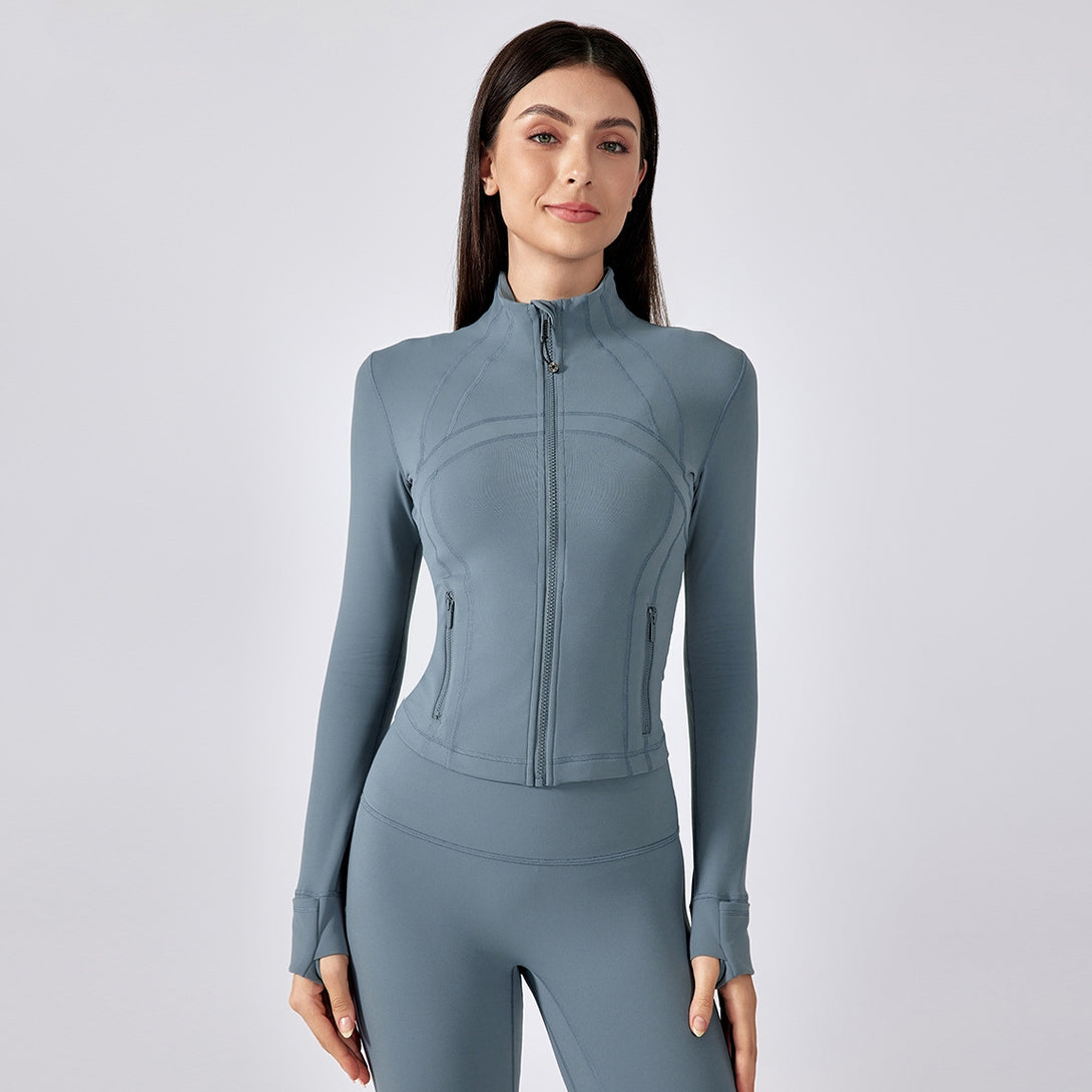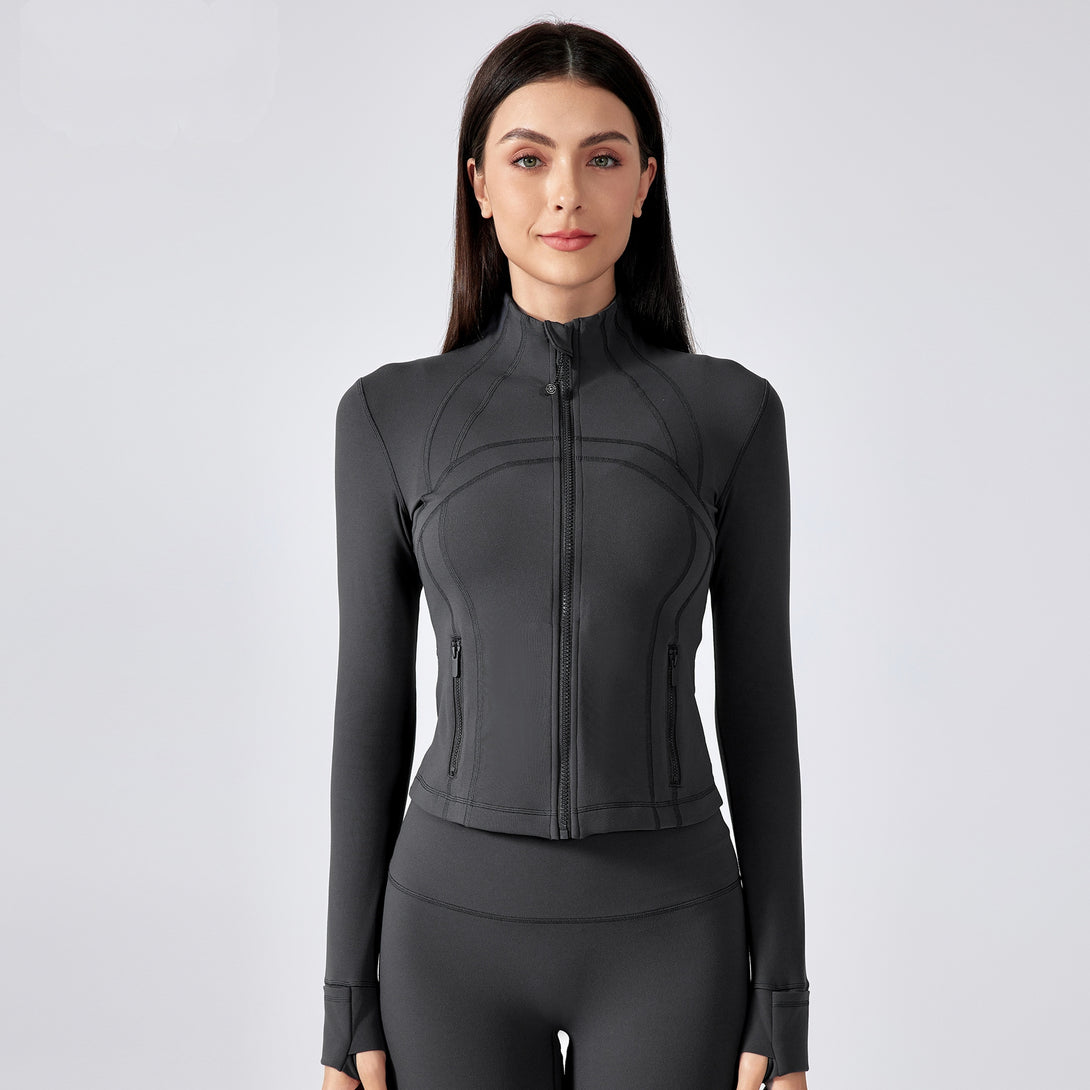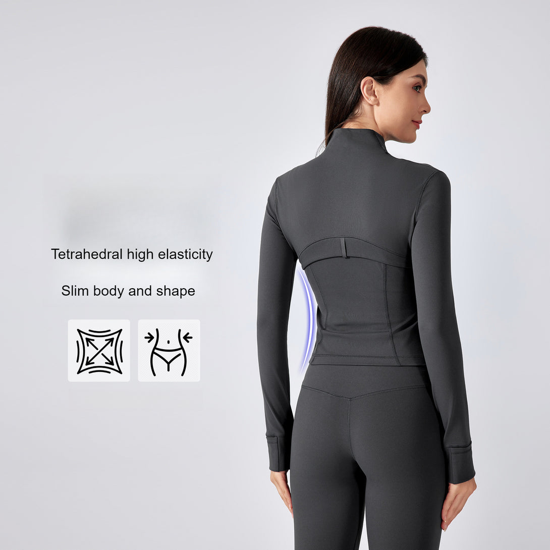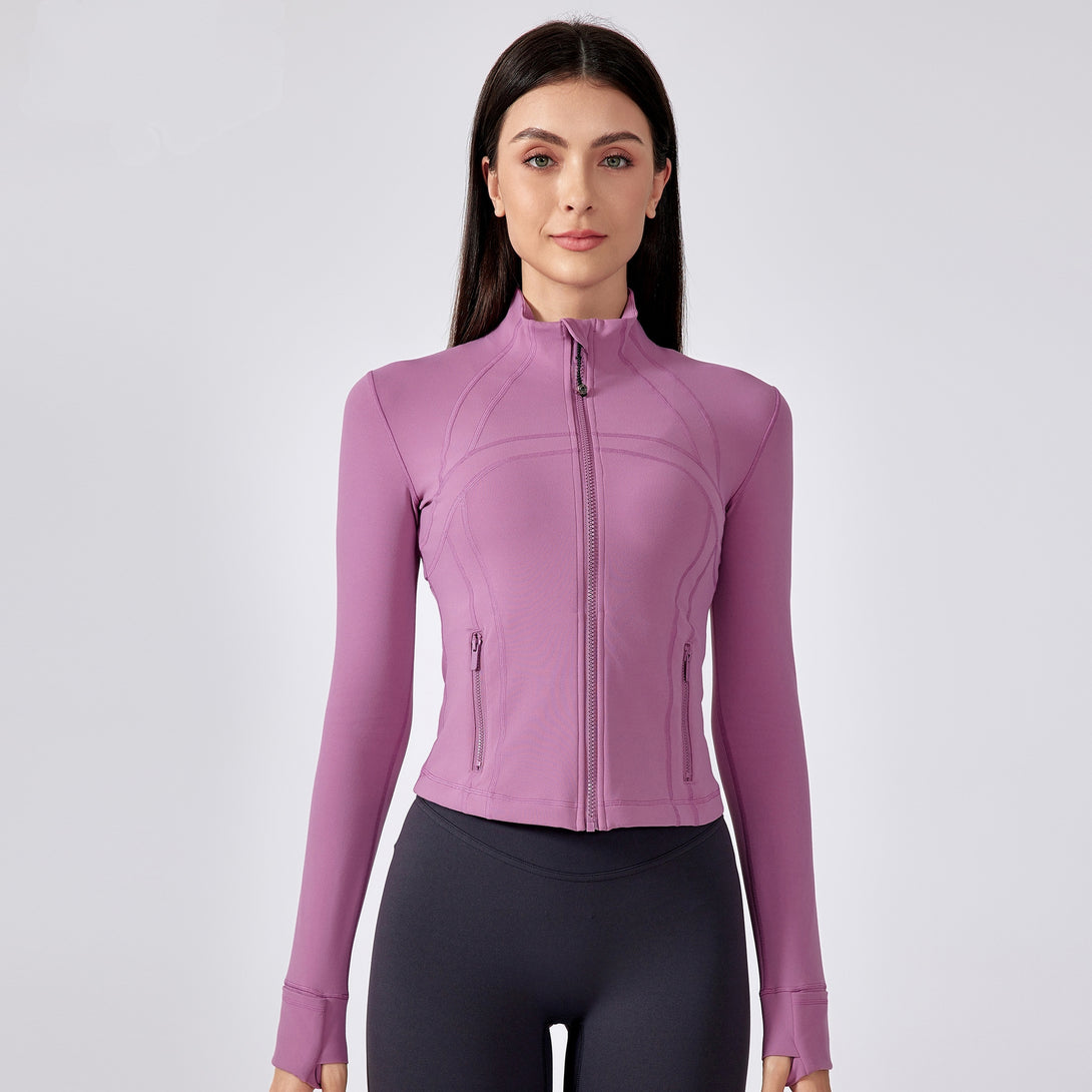 Slim Fit Stand Collar Yoga Jacket for Women Sporty Outdoor Running Workout Zipper Front Jacket WDQ177