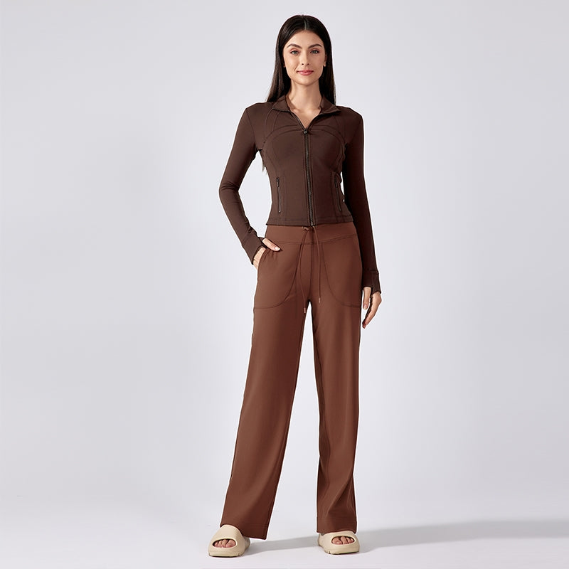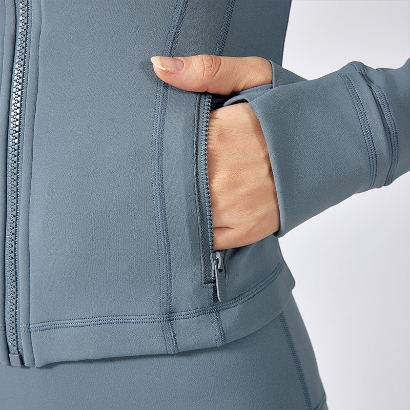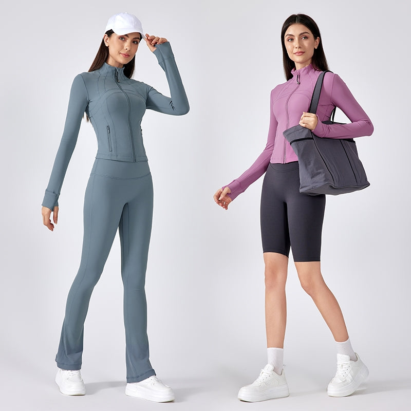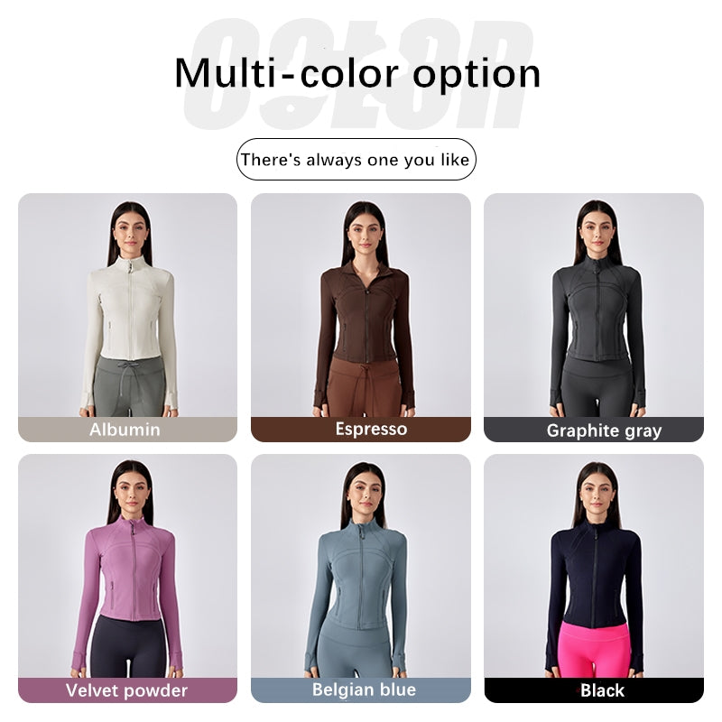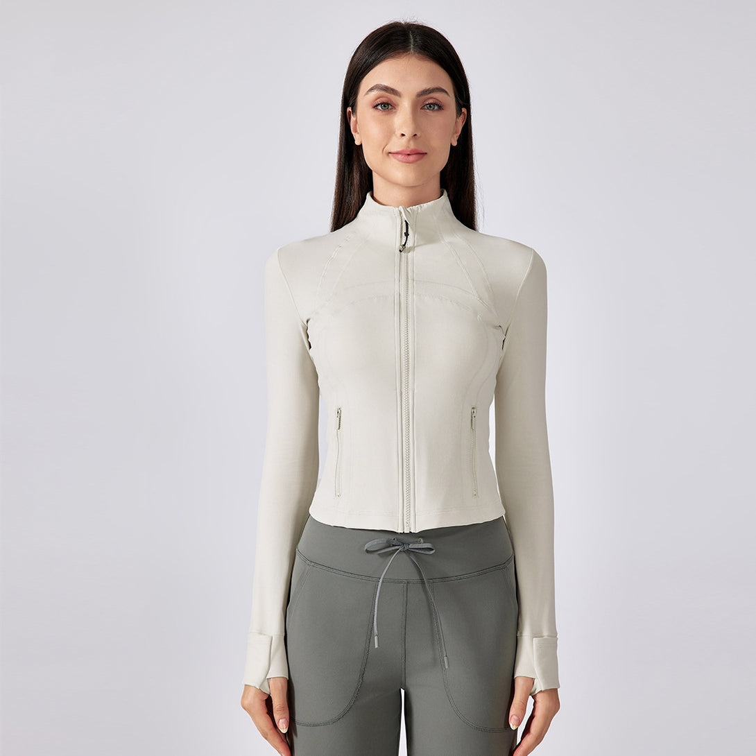 Slim Fit Stand Collar Yoga Jacket for Women Sporty Outdoor Running Workout Zipper Front Jacket WDQ177