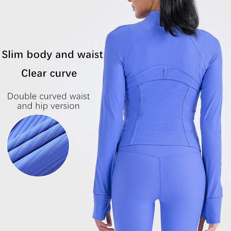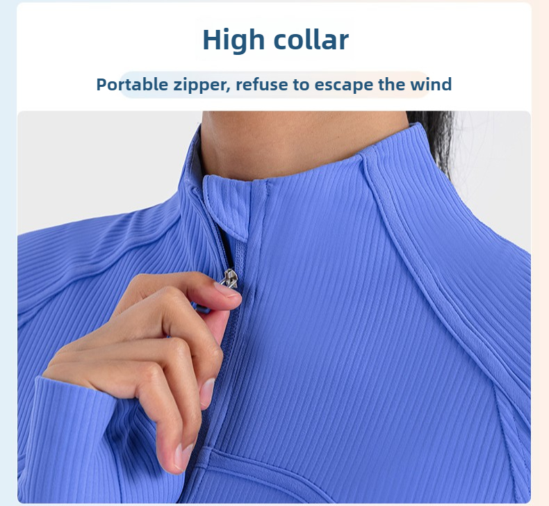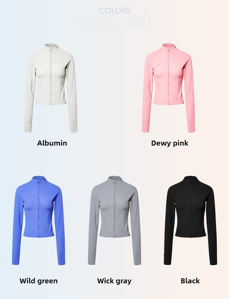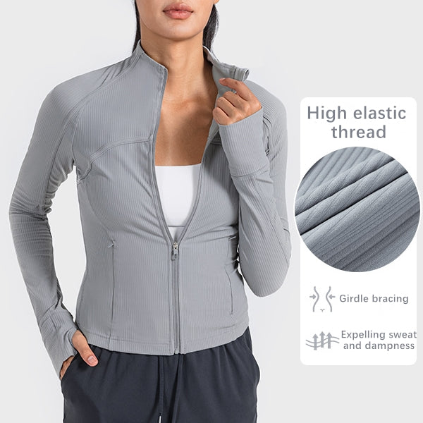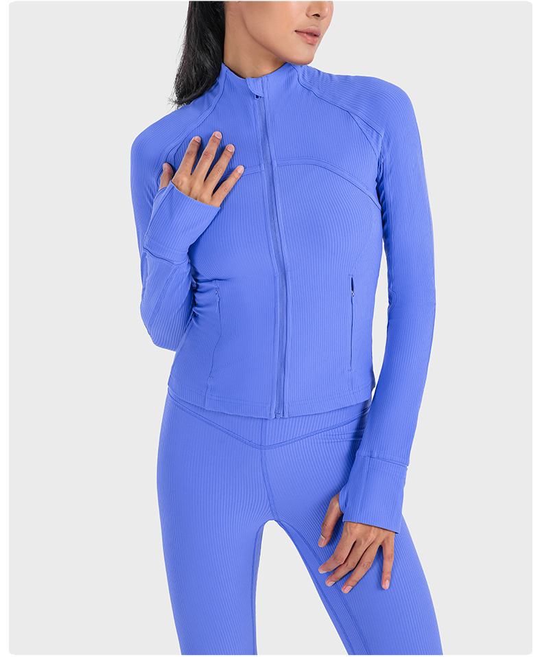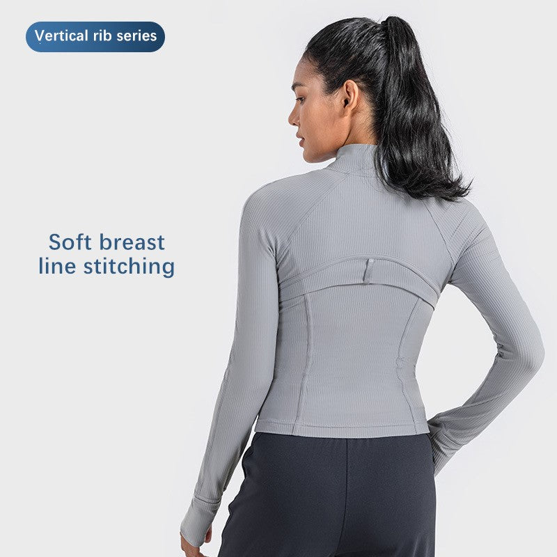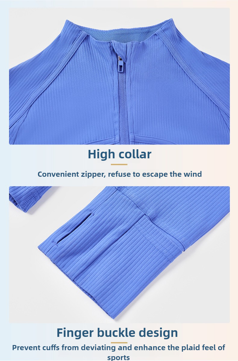 High Elasticity Ribbed Moisture Wicking Yoga Jacket, Sports Running Zipper Short Jacket WDQ006