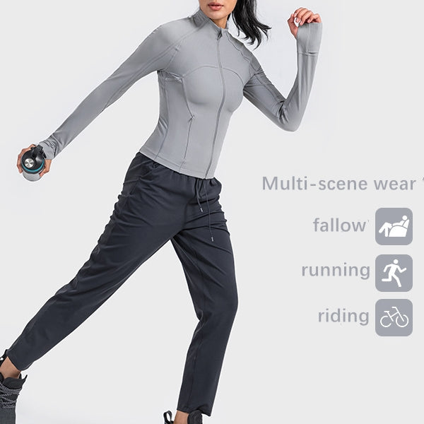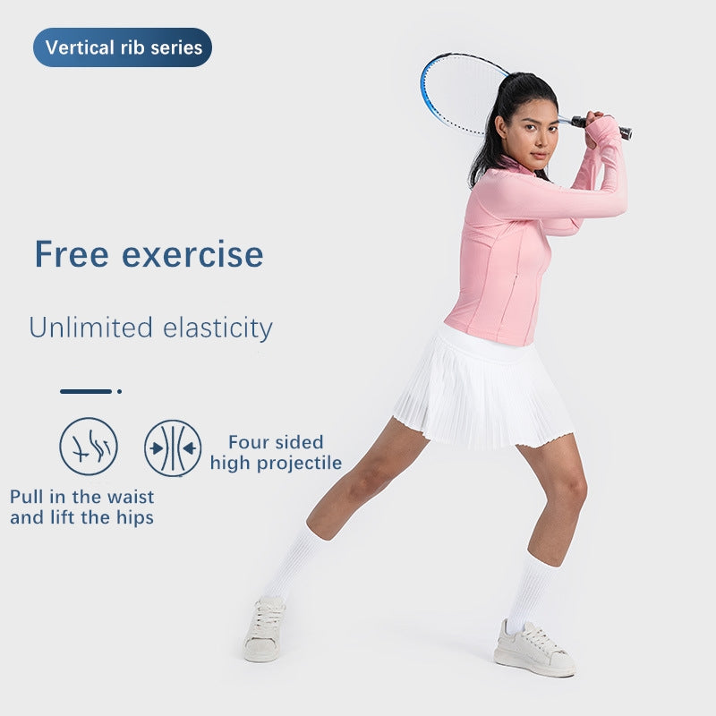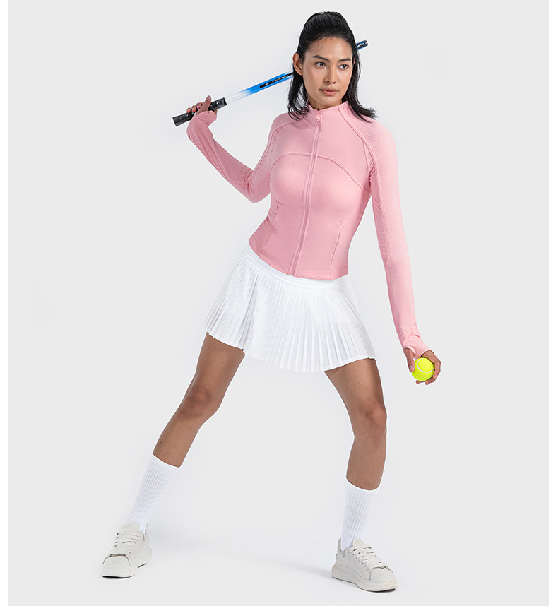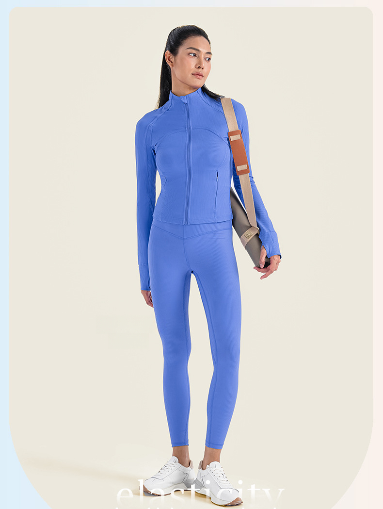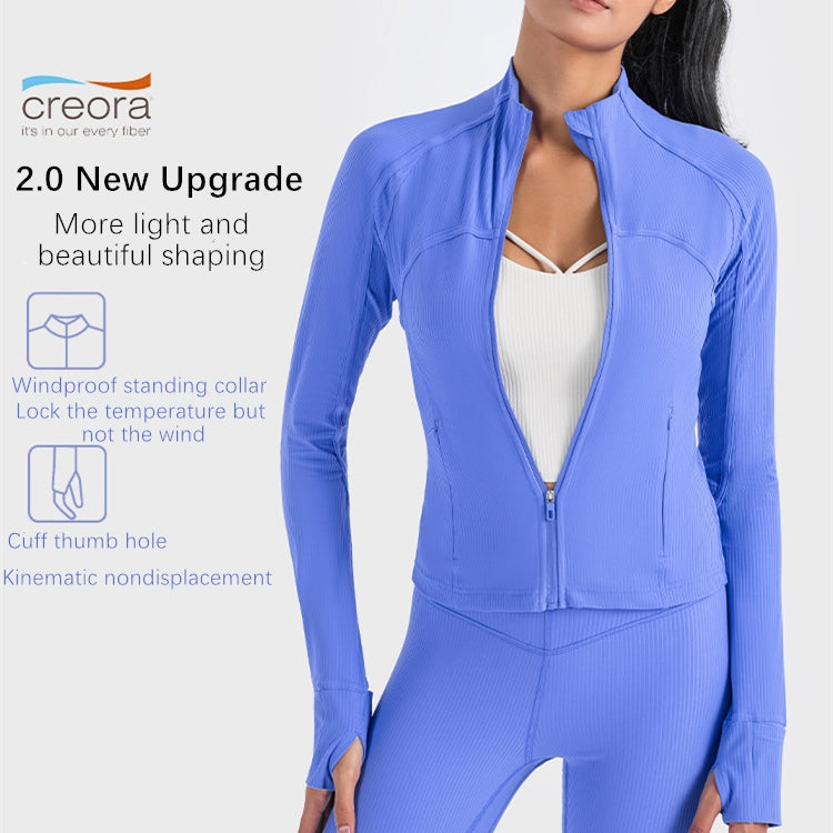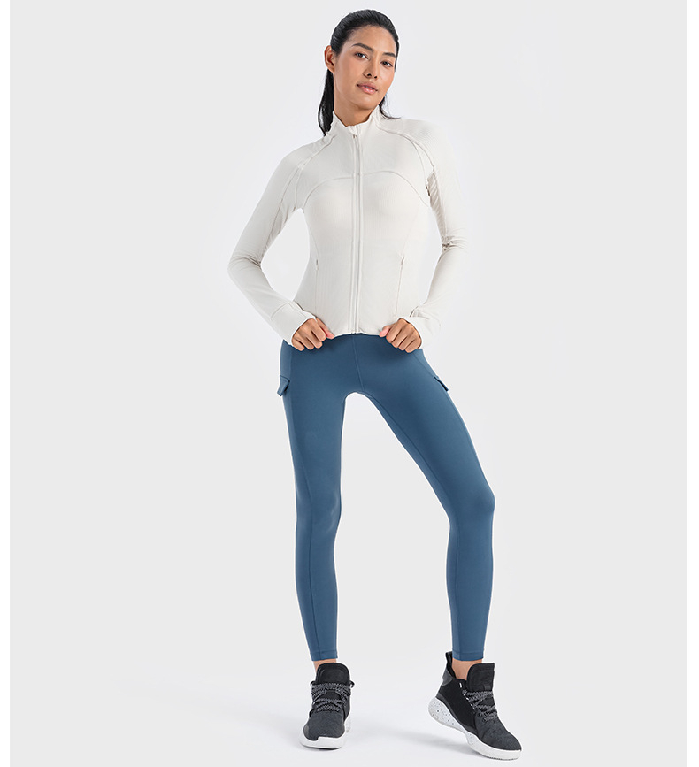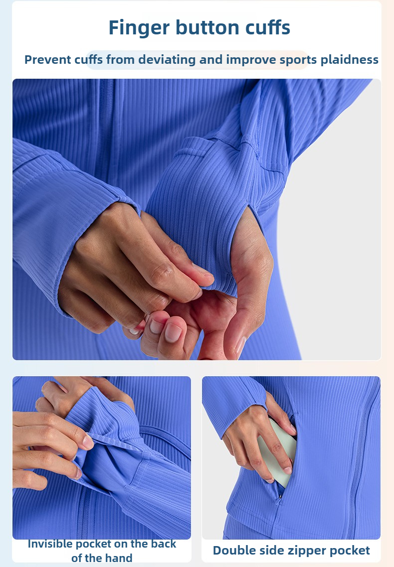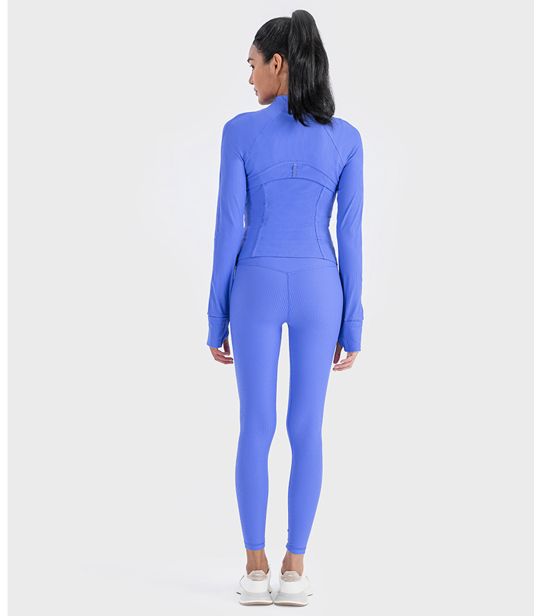 High Elasticity Ribbed Moisture Wicking Yoga Jacket, Sports Running Zipper Short Jacket WDQ006