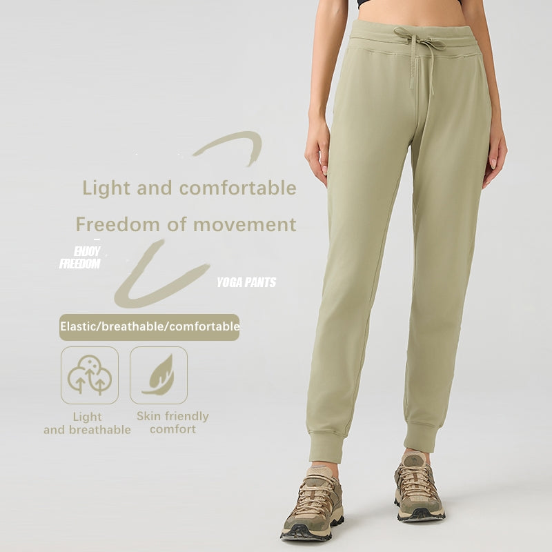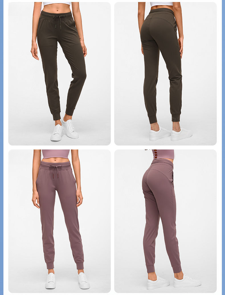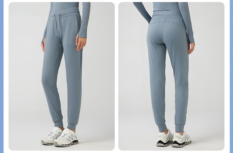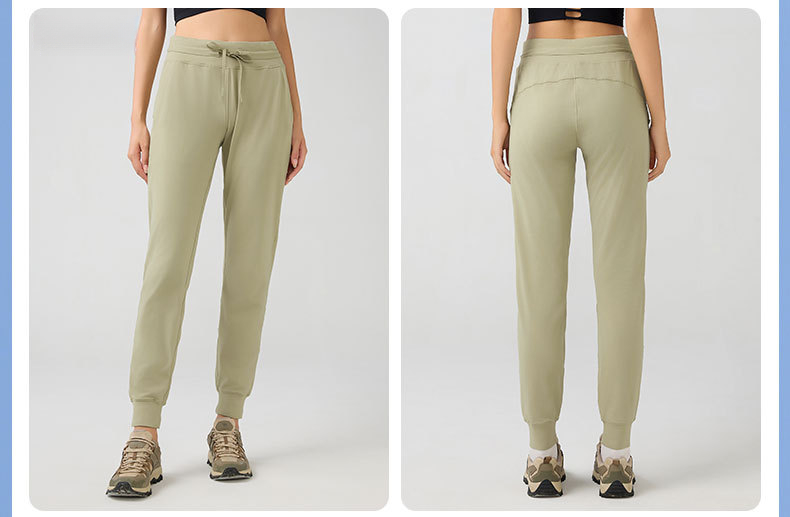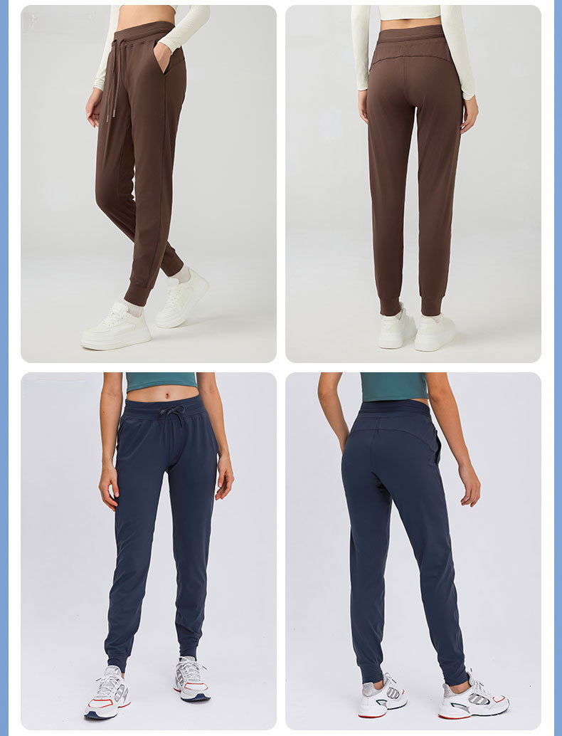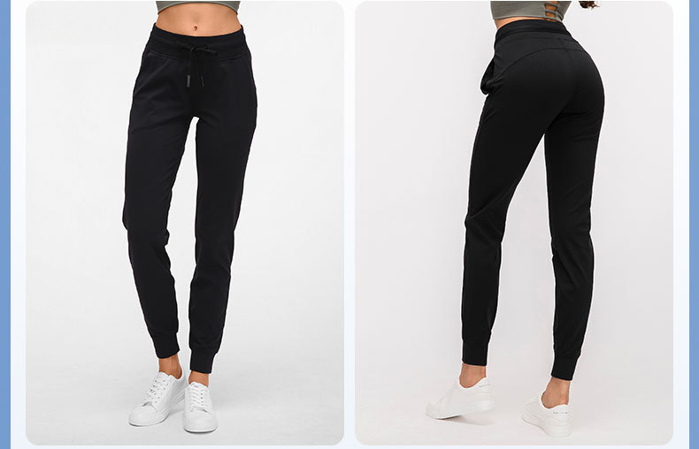 跨境高腰瑜伽裤女抽绳速干松紧跑步健身裤显瘦束脚运动裤D19069