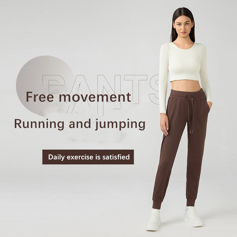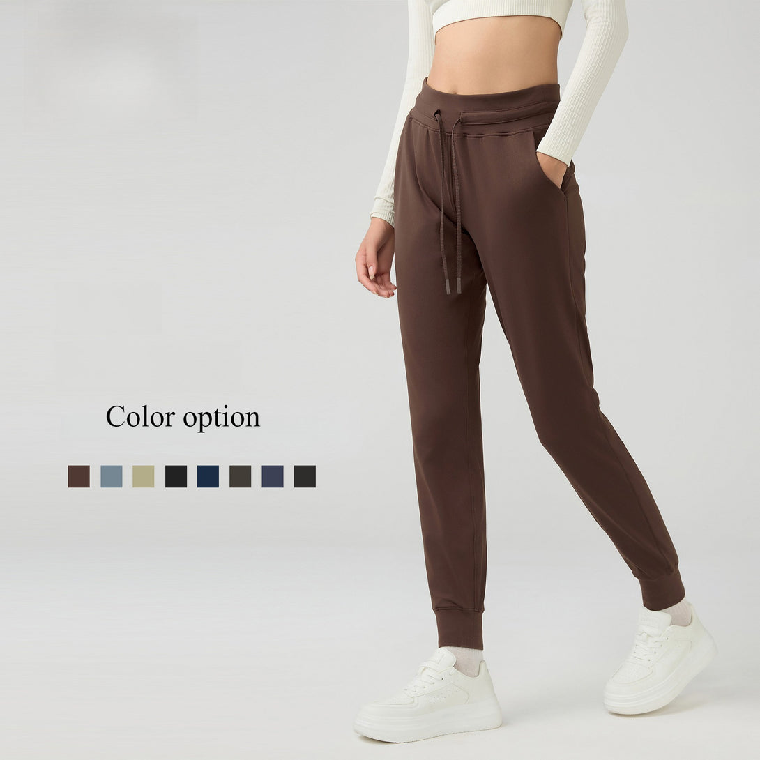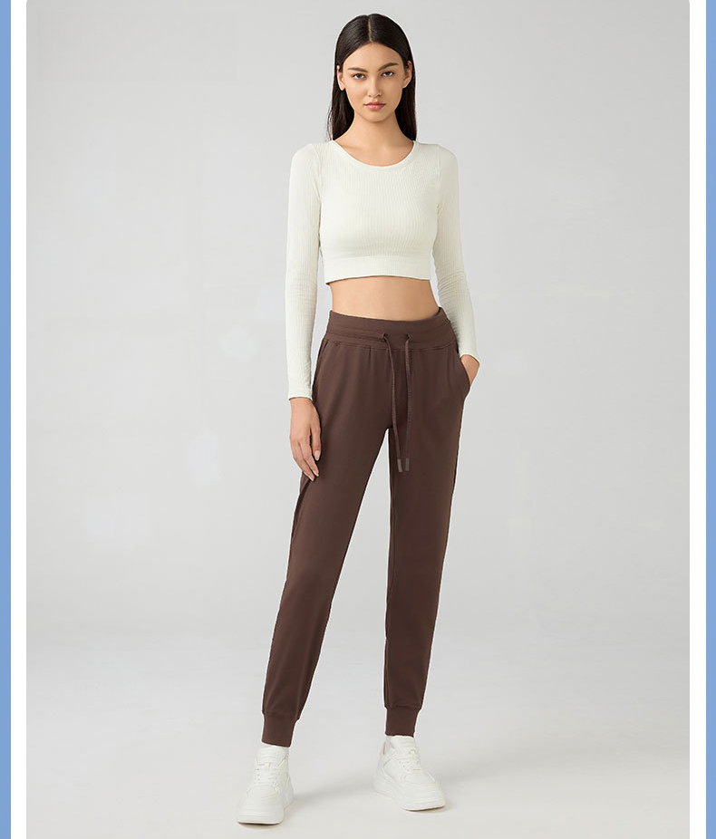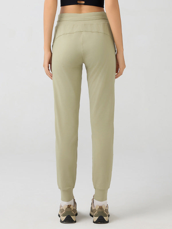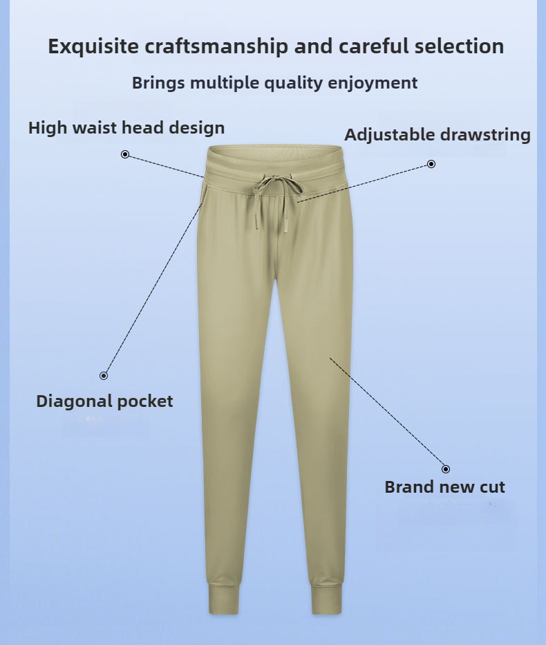 跨境高腰瑜伽裤女抽绳速干松紧跑步健身裤显瘦束脚运动裤D19069