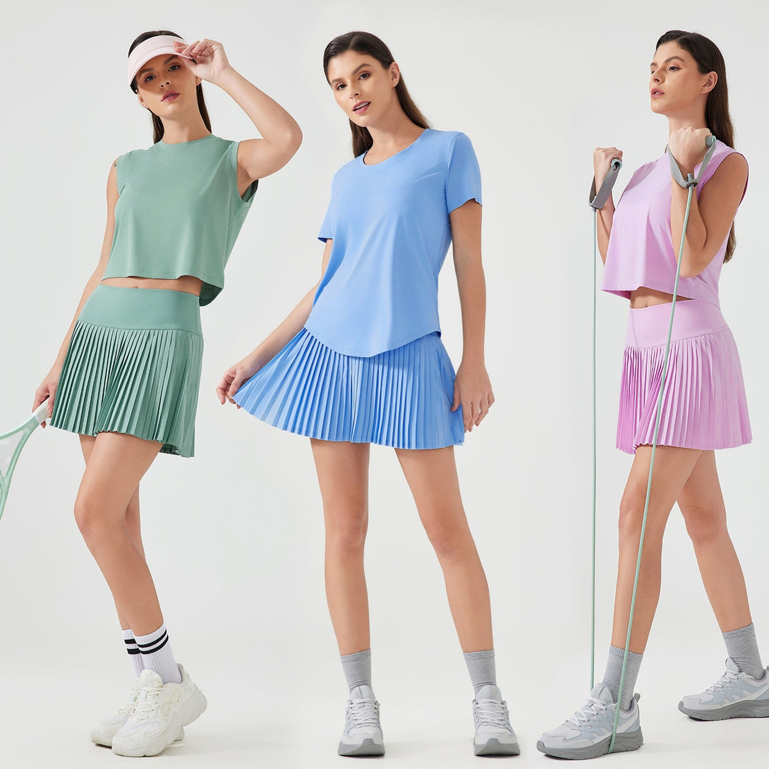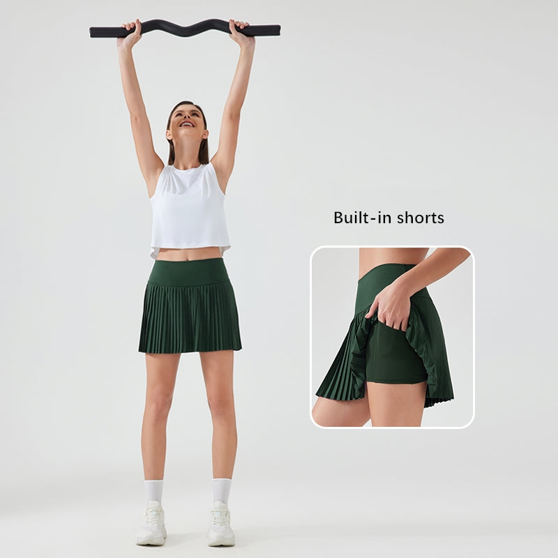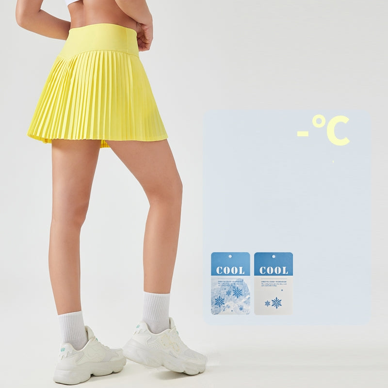 Running Skorts with Double-Layer Pleated Skirt and Anti-Light Shorts, Water-Cooled Elastic Athletic Tennis golf Skirt WDQ383