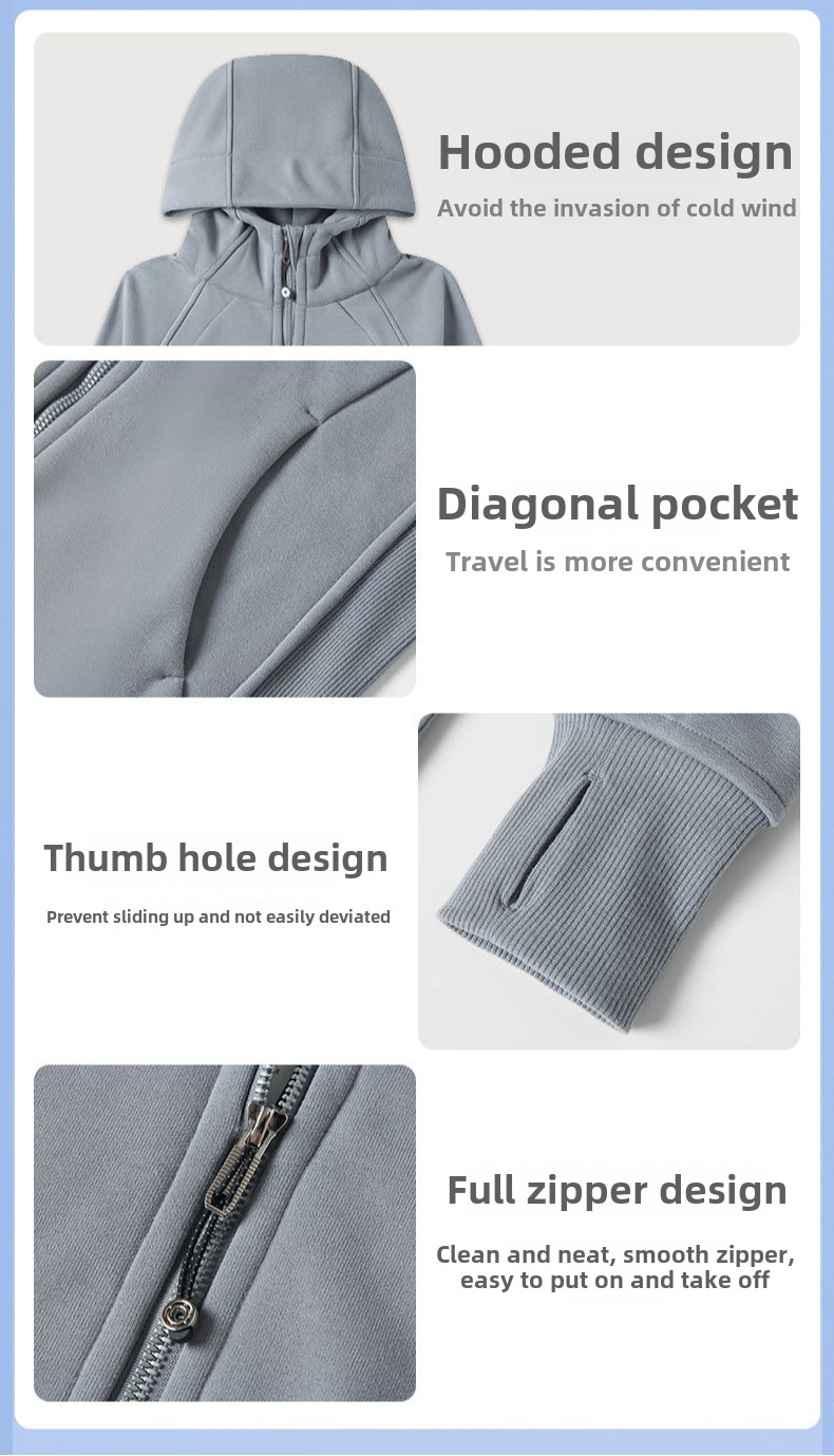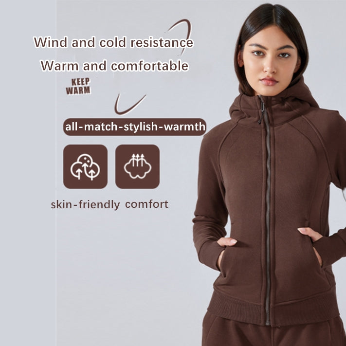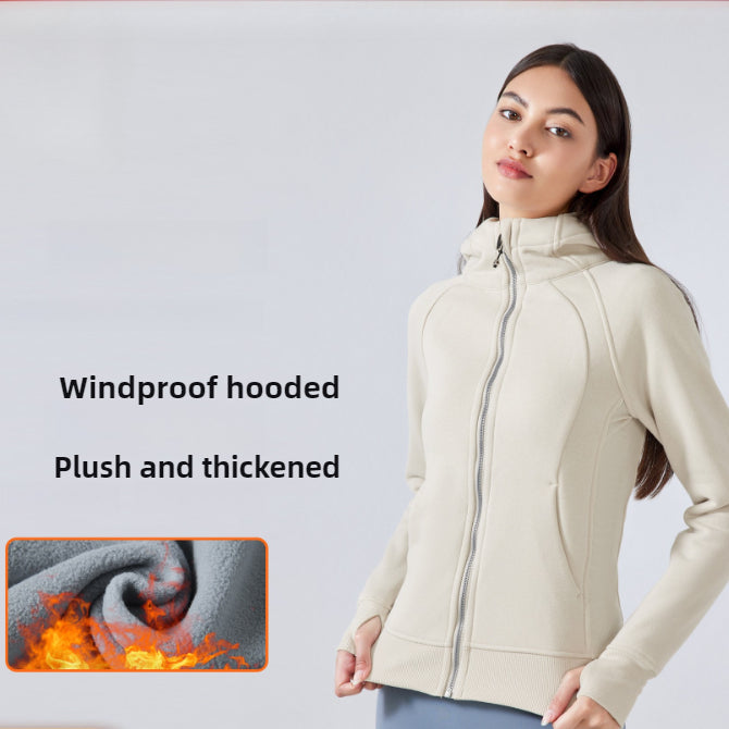 New Thickened and Warm Hooded Jacket for Women Outdoor Fitness Running, Sports Top WDQ028